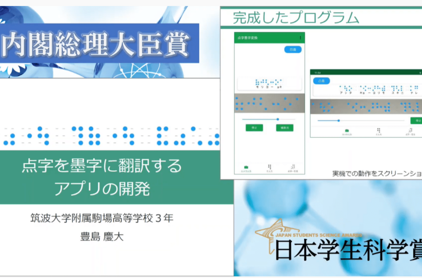 快挙!「点字アプリ開発」で日本学生科学賞内閣総理大臣賞を受賞