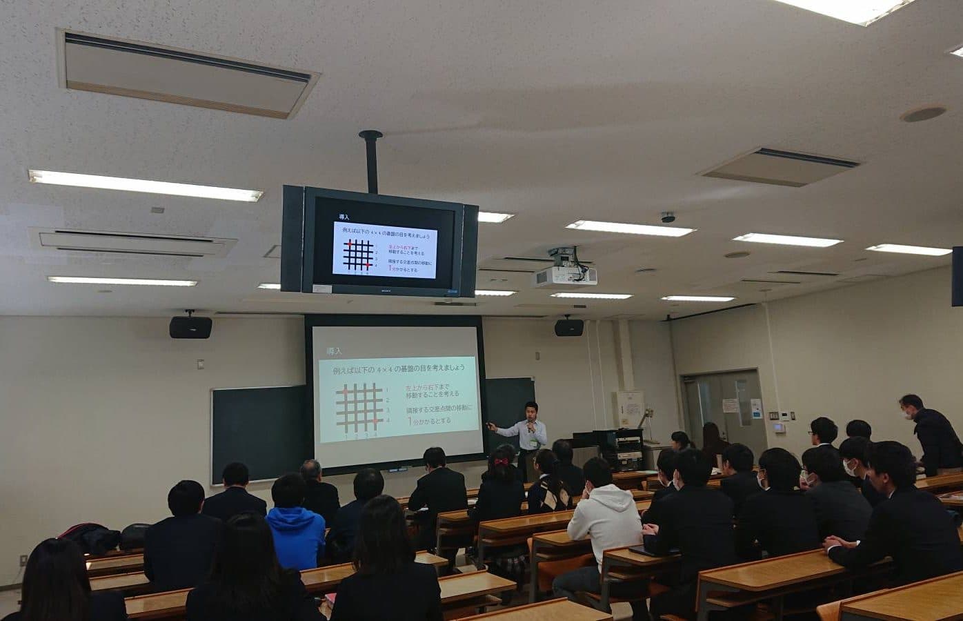 中でも,高校2年の米田優峻君による,「立体交差の最適化」という研究発表について,