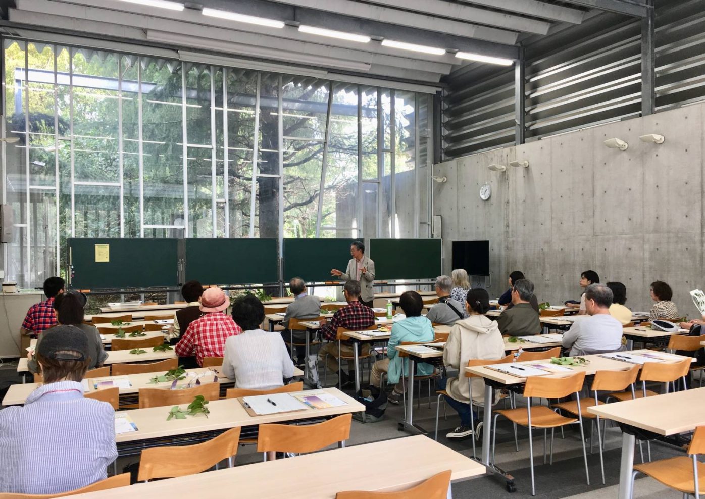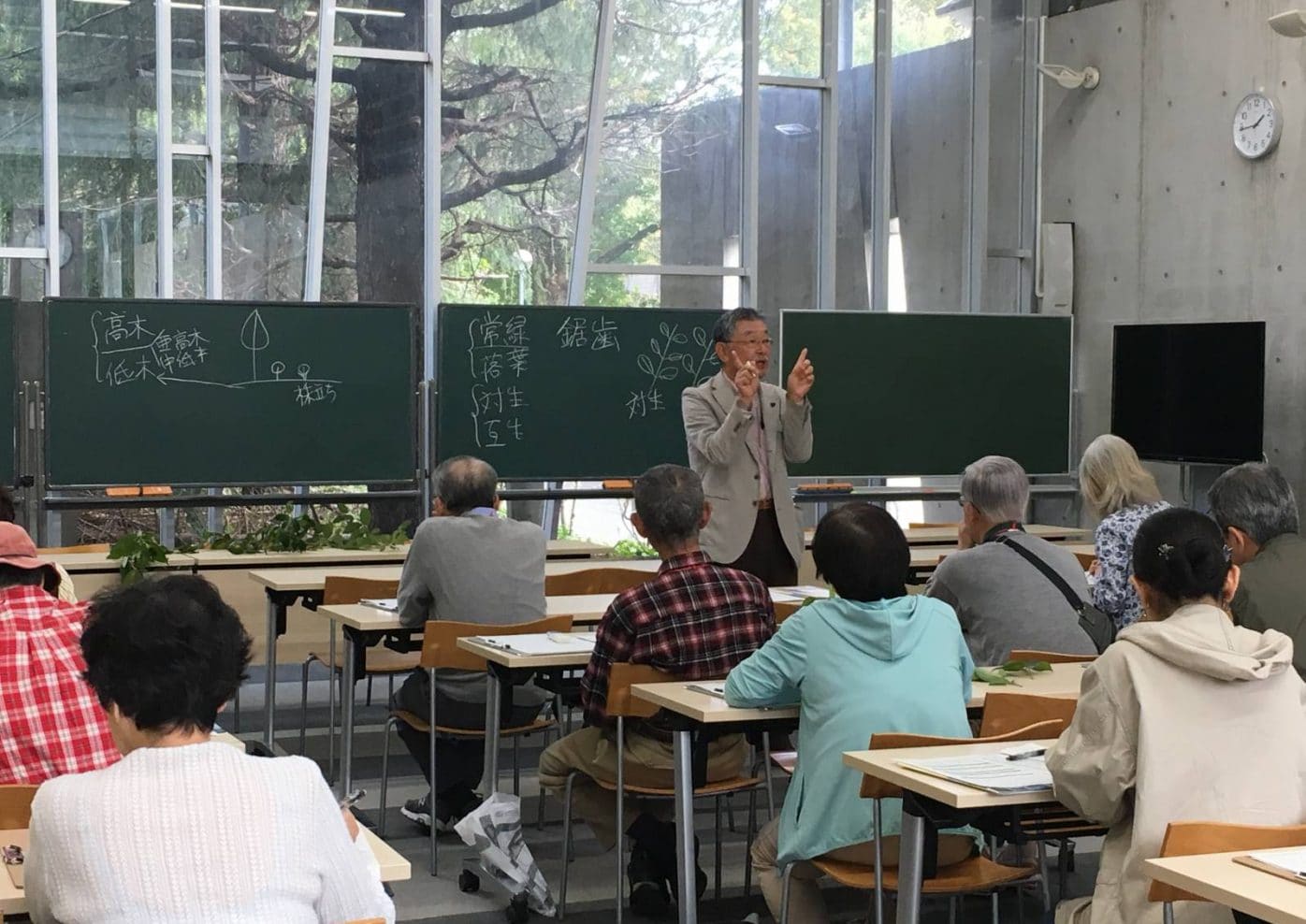 10月22日,筑波大学名誉教授 中村徹先生を講師に迎え,おもに目黒区民の方を対象にした目黒区教育委員会と本校との連携講座「つい人に教えたくなる樹木のはなし」を実施しました。はじめに樹木や葉の観察のポイントの説明の後,参加者全員で駒場野公園へ繰り出し,公園や学校構内の樹木の葉を実際に触りながら中村先生の樹木にまつわる楽しいお話とともに20種類以上観察しました。