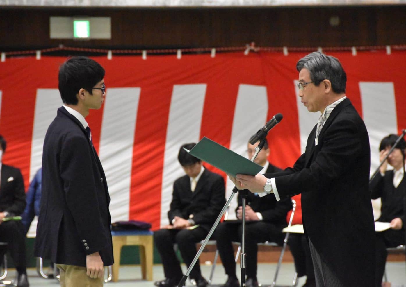 3月2日、高校卒業式が行われました。68期高校3年生たちが中高6年間・高校3年間を終えて巣立って行きました。新型コロナウイルス感染拡大防止のため、止むを得ず卒業生と教職員のみの出席となり、保護者の皆様にお越しいただくことが叶わず大変残念でしたが、卒業式終了後にそのまま全体で教育長表彰と最後の学年集会と全員での記念撮影も行われ、暖かい雰囲気の中で卒業生たちを送り出すことができました。