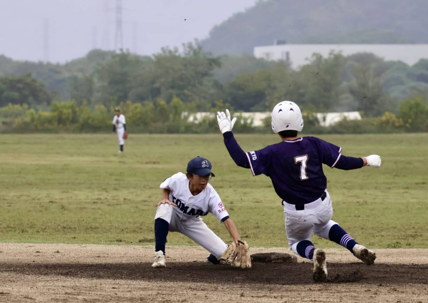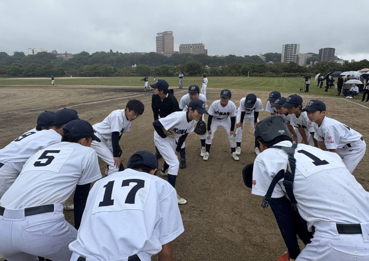 10月11日(土)に 江戸川区河川敷グランドにて、第78回 東京都中学校野球秋季大会の1回戦が行われました。対戦相手は町田市の強豪、町田市立南中学校でした。霧雨が降る悪天候の中での試合でしたが、チーム一丸となって7回を戦い抜き、念願の都大会初勝利を収めることができました!