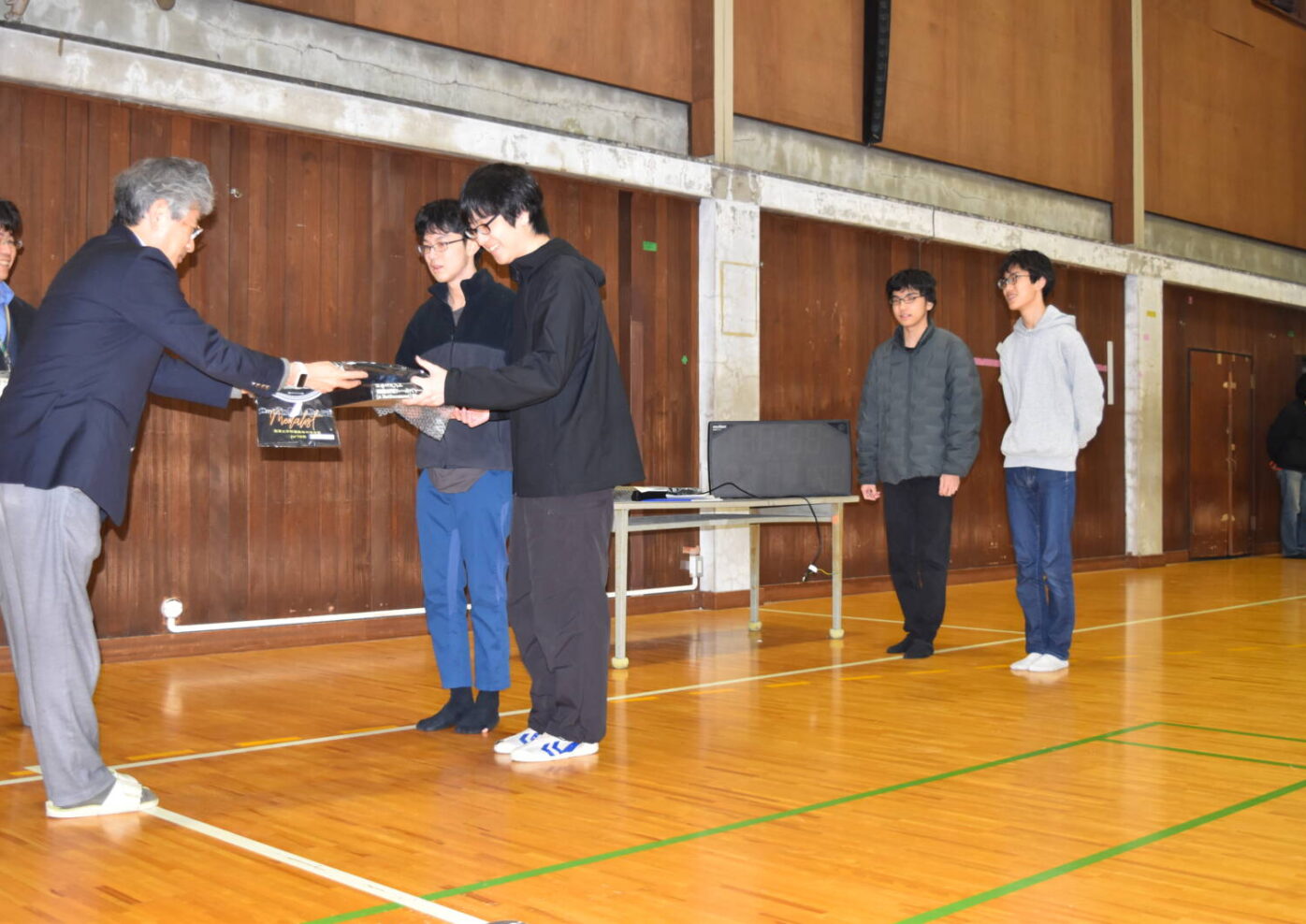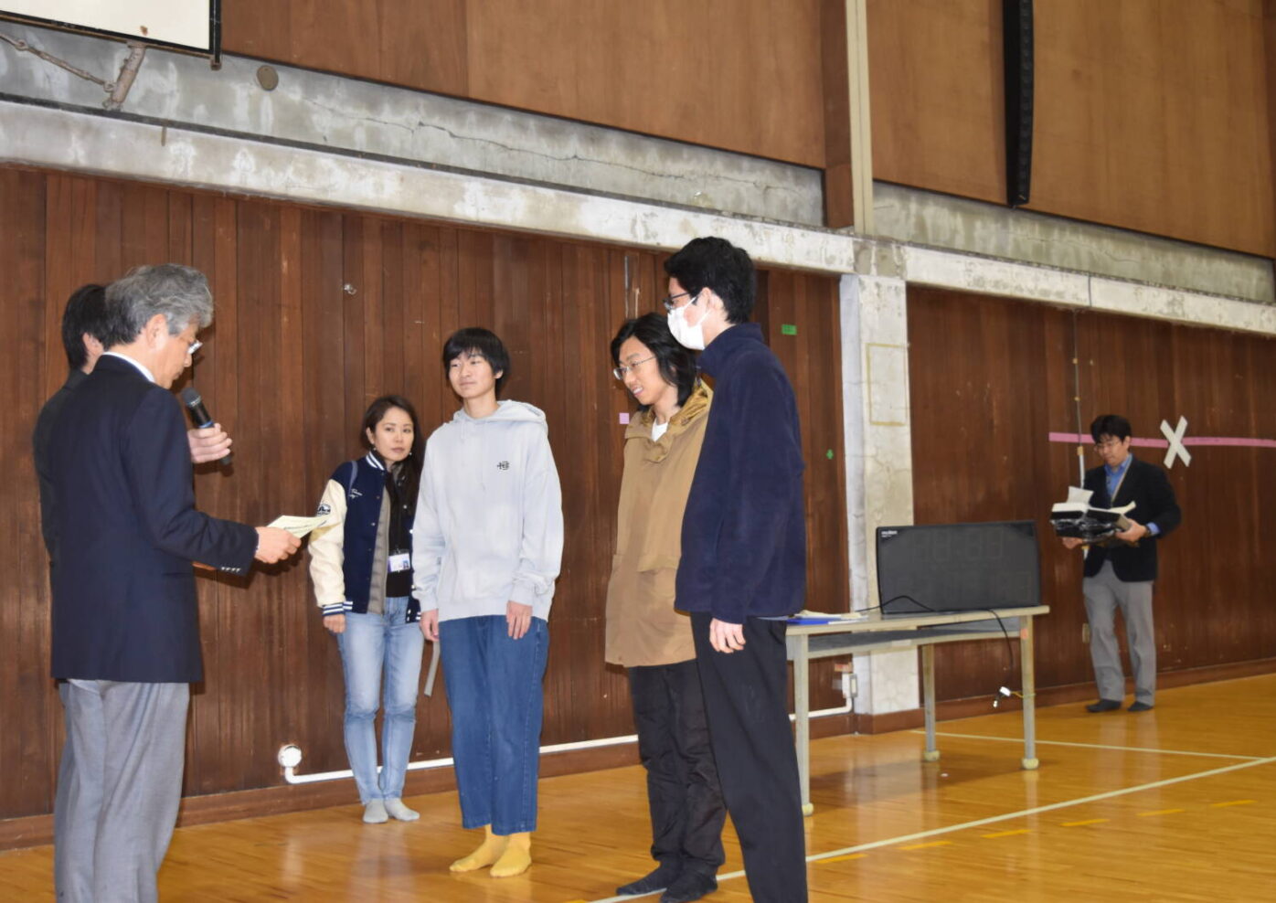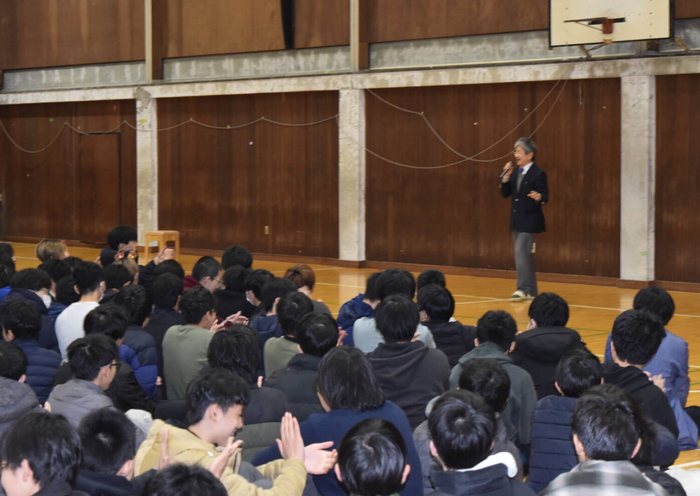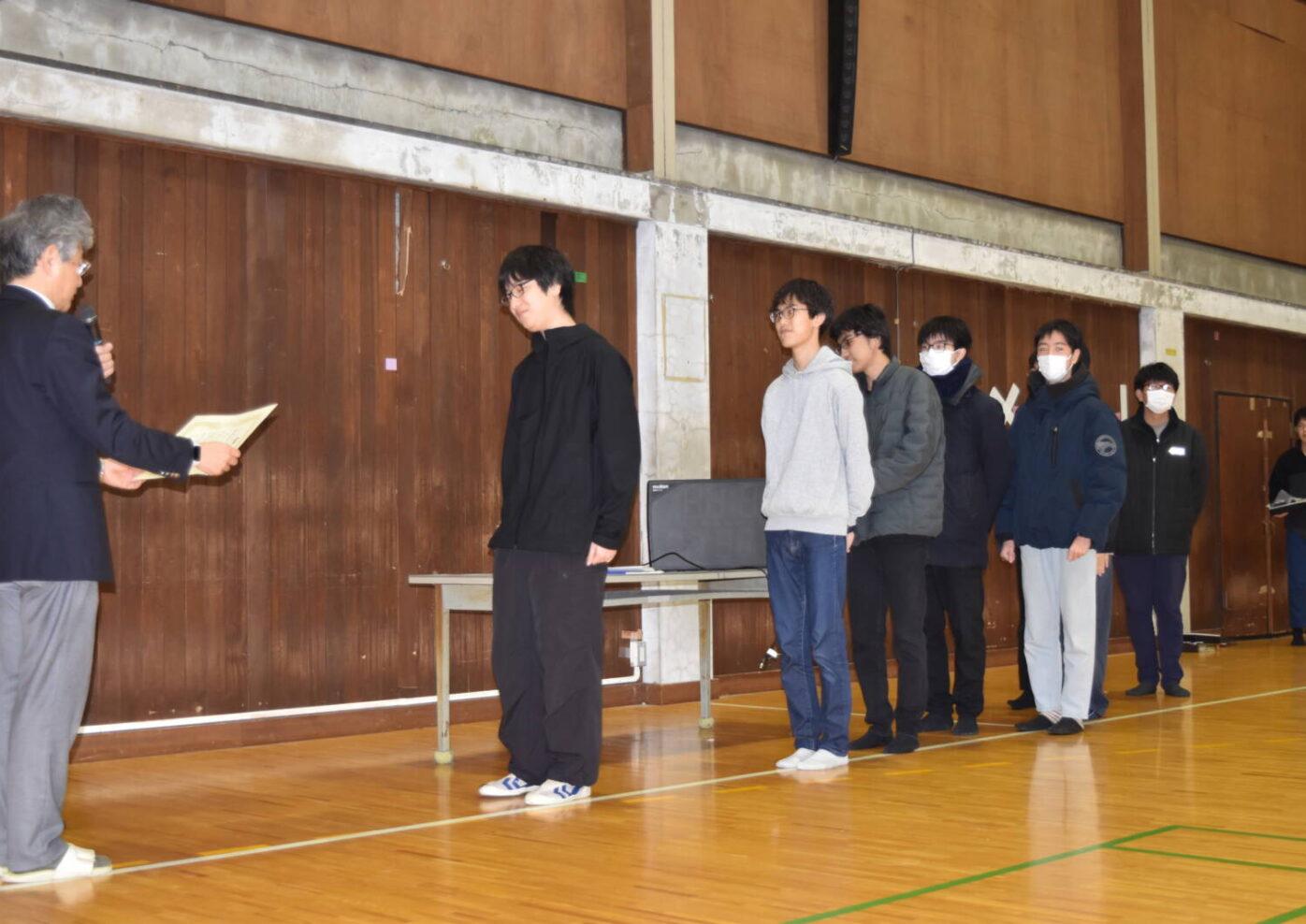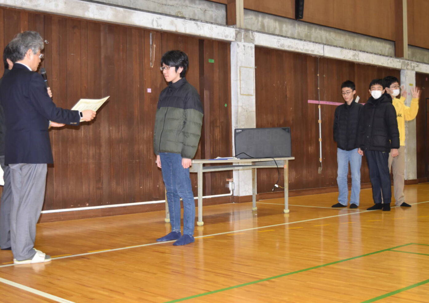校長先生から、今年の漢字で惜しくも2位に終わった米の字に関連するお話のほか、大会・コンテストなどで活躍した生徒の表彰などが行われました。