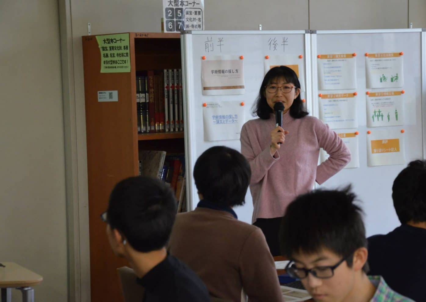 12/13(金)は、「学術情報の探し方」と題して、本校図書館司書の加藤先生と、筑波大学附属図書館の学習支援担当の大和田康代先生に講義と演習をしていただきました。