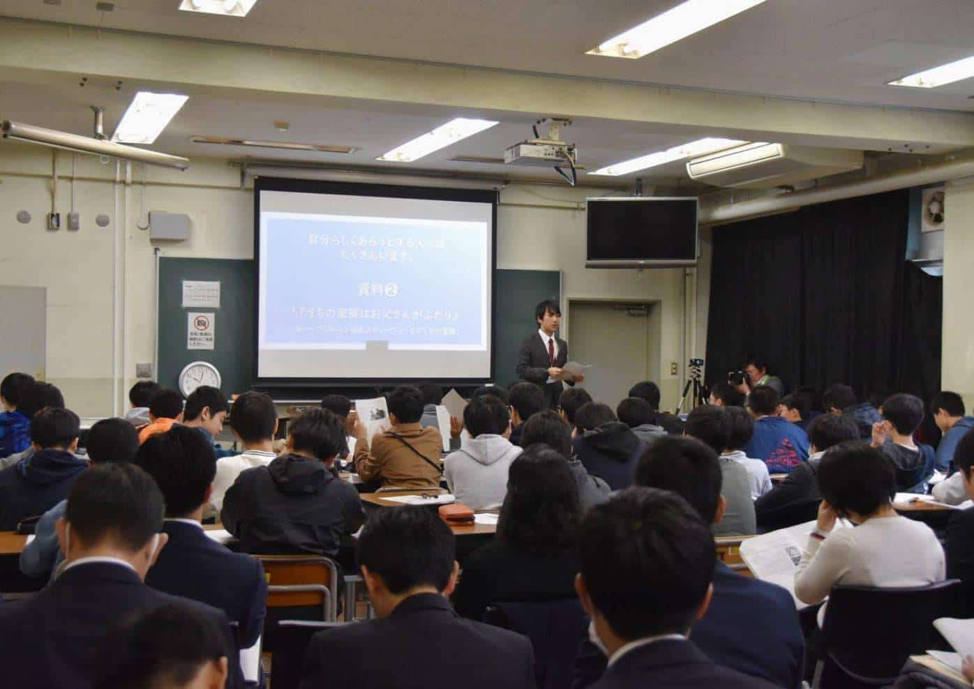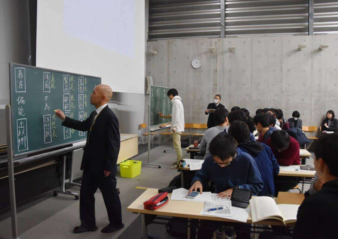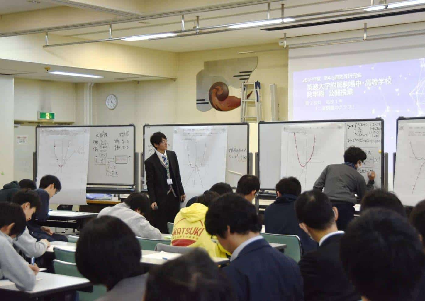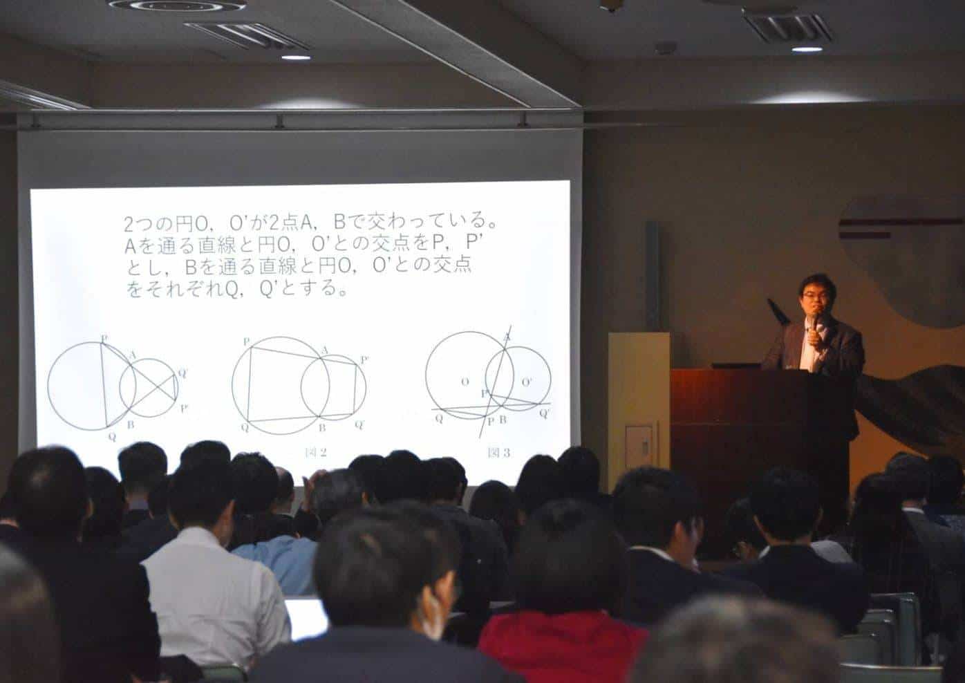 11月23日(土),本校の第46回教育研究会が行われました。今年度は国語,数学,保健体育,美術の公開授業と研究協議会を開催しました。あいにくの天候にもかかわらず全国各地から400名を超える教育関係者の皆様にお越しいただきました。講演会では東京学芸大学の西村 圭一先生から「探究的な学びの『実装化』ーすべての学校で,すべての生徒にー」という題目で,数学教育の視点から,いかに探究的な要素を学びに取り入れていくかについて有意義なご講演をいただきました。